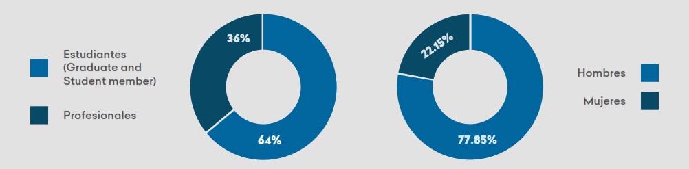 La Sección Perú del IEEE tiene +2,800 miembros al 01 de diciembre de 2024, de los cuales el 64% son estudiantes (Graduate and Student member) y el 36% son profesionales. De ellos, aproximadamente el 22.15% son mujeres y 77.85% hombres.